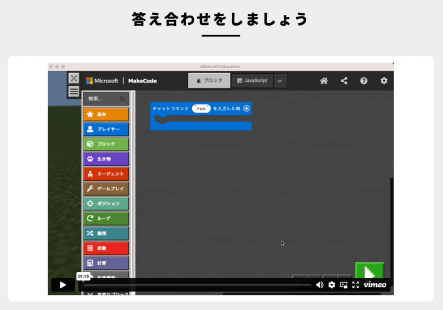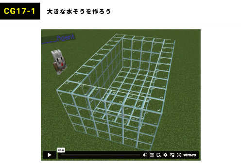 マイクラプログラミングの基本操作から始まり、スモールステップでプログラミングの考え方を身につけていきます。